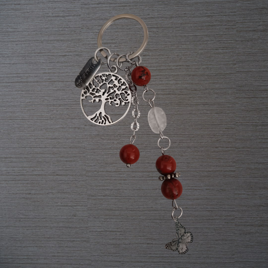 Porte-clés Jaspe rouge véritable et Cristal de roche